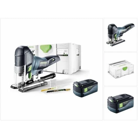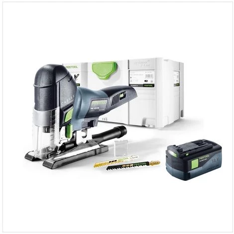 La scie sauteuse sans fil Festool PSC 420 Li EB CARVEX est aussi puissante qu’une scie filaire. La machine est idéale pour: l’installation des éviers et table de cuisson, et toutes sortes de travaux d’encastrement pour le mobilier ou pour les aménagements intérieurs. La scie sauteuse sans fil Festool PSC 420 Li EB convient parfaitement pour des coupes circulaires et arrondies, mise à longueur de pièces, chantournage de poutres et des coupes par le bas. La machine a un comportement remarquable dans les courbes, grâce à un triple guidage de la lame. De plus, la machine contient une force d’entraînement puissante garantissant une progression de coupe rapide et une aspiration performante pour travailler dans des conditions propres. Un revêtement Softgrip à la forme ergonomique a étais installé sur l’outil et un poids de seulement 2,3 kg contribue à une meilleure manipulation, en addition un interrupteur marché/arrêt bilatéral est accessible quelle que soit la position de travail, plus un système de changement rapide et sans outil des lames pour une meilleure utilisation et une lumière stroboscopique pour une meilleure visibilité.
