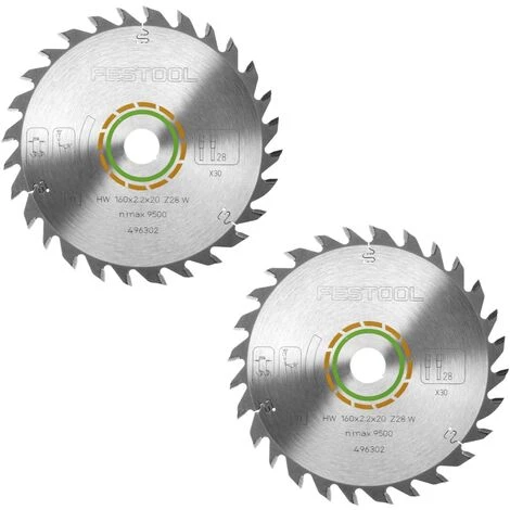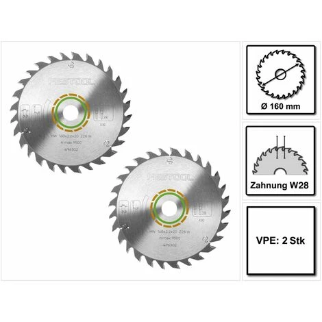 – 2x Festool W28 Lames de scie circulaire universelles, 160 x 2,2 x 20 mm, 160 mm, 28 dents (496302)