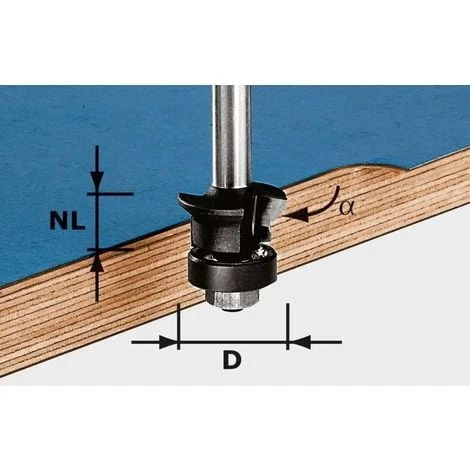 La fraise combinée à deux fonctions – chanfreinage et affleurage en une seule passe.Le roulement de guidage enrobé de plastique ne laisse aucune trace et ménage le chant du panneau